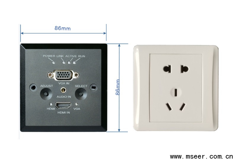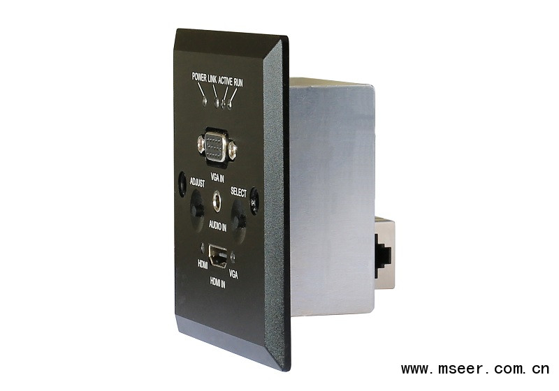 本系列產(chǎn)品包括標(biāo)準(zhǔn)86型接口器模塊(可以墻插和地插形式安裝)及桌面接口器(桌插)兩種類型。具備HDMI和VGA兩路輸入自動選擇(HDMI優(yōu)先)之功能,并轉(zhuǎn)換成HDbaseT信號發(fā)送輸出,可通過單根CAT5電纜將HDMI或VGA的視頻、音頻信號中的任意1路最遠發(fā)送至100m遠的接收端。它可將輸入的模擬視頻及音頻信號數(shù)字化,實現(xiàn)數(shù)字高清信號的遠距離無損傳輸,采用運端PoL供電技術(shù)、方便安裝布線。